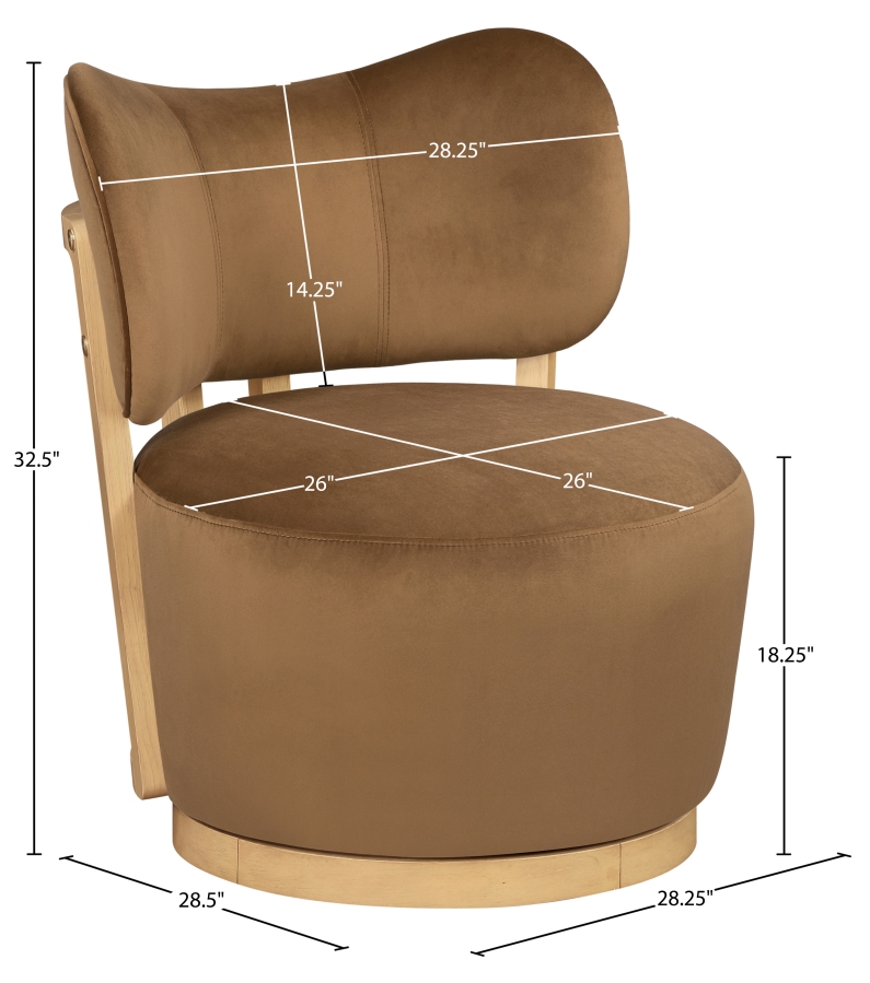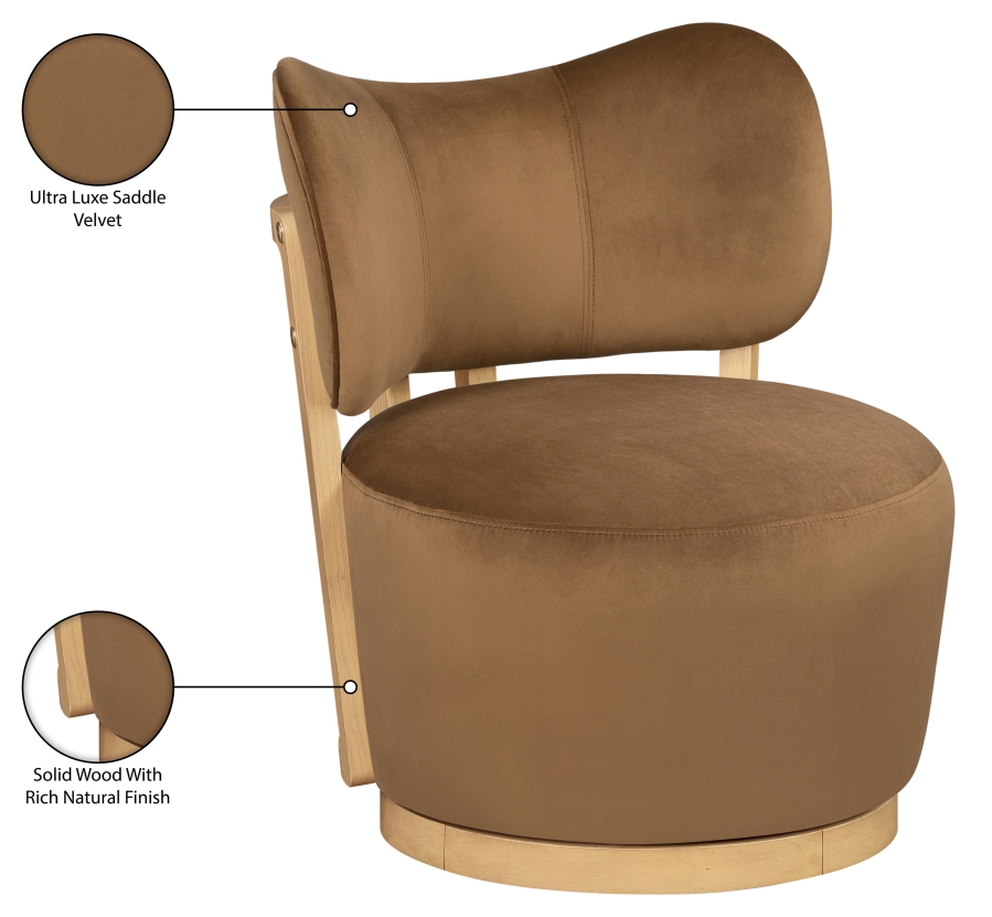 Indulge in the allure of the saddle Elara Swivel Accent Chair by Meridian Furniture. Its captivating design and luxurious saddle tone elevate any space with effortless elegance. Crafted with precision and durability in mind, this stunning piece becomes the focal point of gatherings, fostering moments of connection and warmth. Embrace sophistication and style with the Elara Swivel Accent Chair, a testament to exquisite taste and timeless beauty.