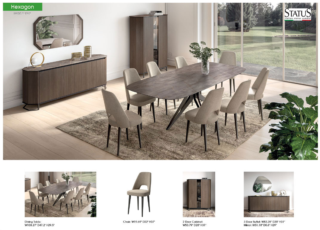 The price includes: 1x Hexagon Dining table Fixed 275cm + 8x Hexagon Chair + 1x Hexagon 3 Door Buffet + 1x Hexagon mirror + 1x Hexagon 2 Door Cabinet